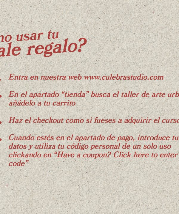 - Valor de 60€ para gastar en uno de nuestros cursos de arte urbano